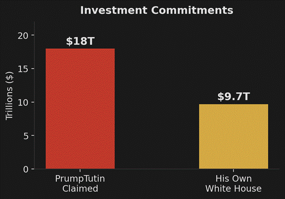 He claimed $18 trillion in investment commitments. His own White House says $9.7 trillion. Nearly double the lie.