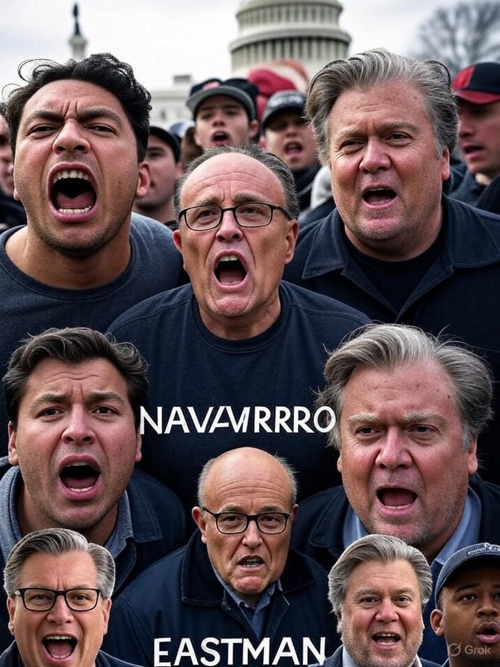 January 6 wasn’t chaos. It was the climax of a presidency built on lawlessness. Giuliani, Navarro, Eastman, Bannon—generals in suits directing foot soldiers with sledgehammers. Behind them stood the Proud Boys’ Enrique Tarrio, the Oath Keepers’ Stewart Rhodes, and hundreds of rioters now in prison orange. It wasn’t improvised. It was executed.