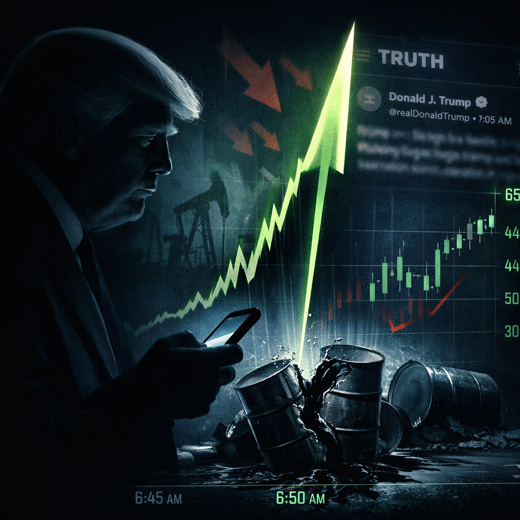 Here is what happened. At 6:50 AM Monday, the S&P 500 e-Mini futures on the CME recorded what CNBC called "a sharp and isolated jump in volume, breaking from an otherwise subdued premarket backdrop." Simultaneously, West Texas Intermediate oil futures spiked in the same way. Early-morning futures markets are thin. That kind of burst stands out like a gunshot in an empty room. There was no publicly available news at 6:50 AM to explain it. None.
