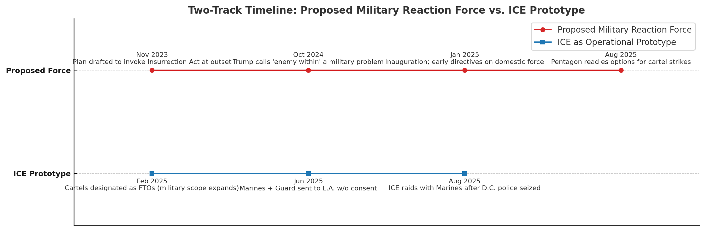 Two-Track Timeline: Proposed Military Reaction Force vs. ICE Prototype