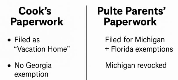 The hypocrisy is radioactive. Cook’s forms line up. The Pultes’ don’t. One case was manufactured. The other left a bill.